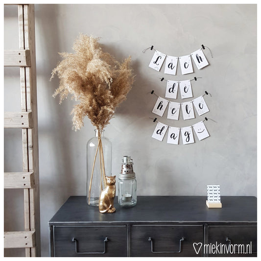 Kies een quote, een naam, of maak er een toffe verjaardagsslinger van met de leeftijd van de jarige! Superleuk om aan de muur in huis te hangen.