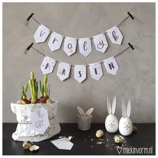 Hang de slinger op in huis. Of ga aan de knutsel voor Pasen.